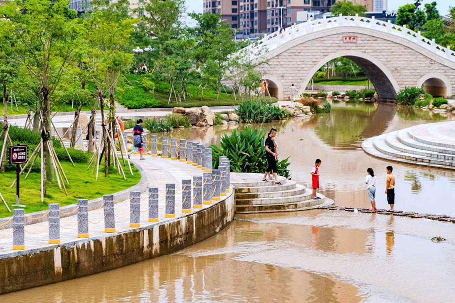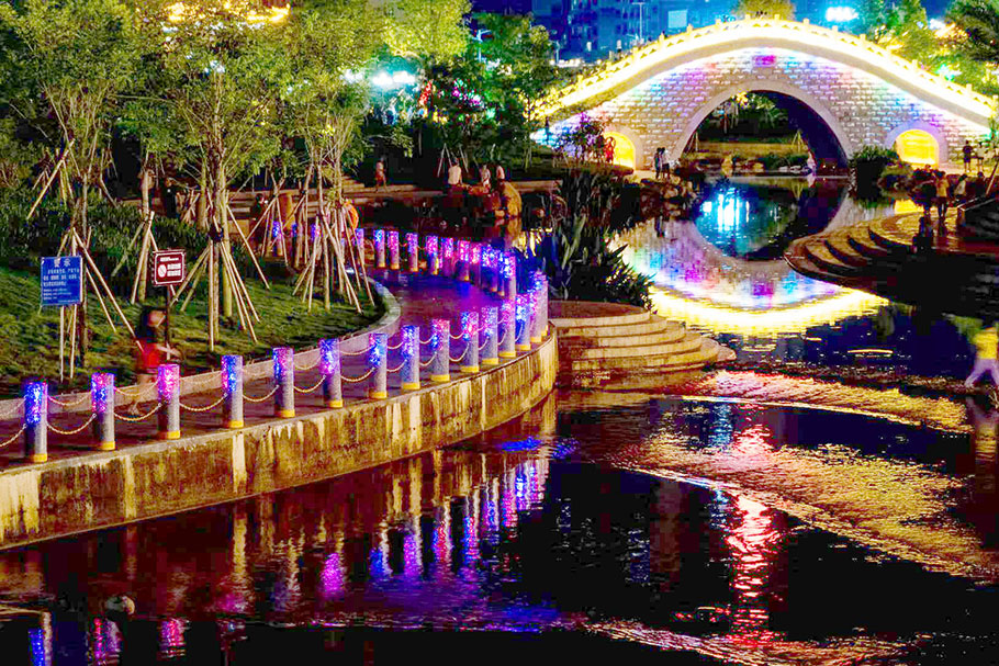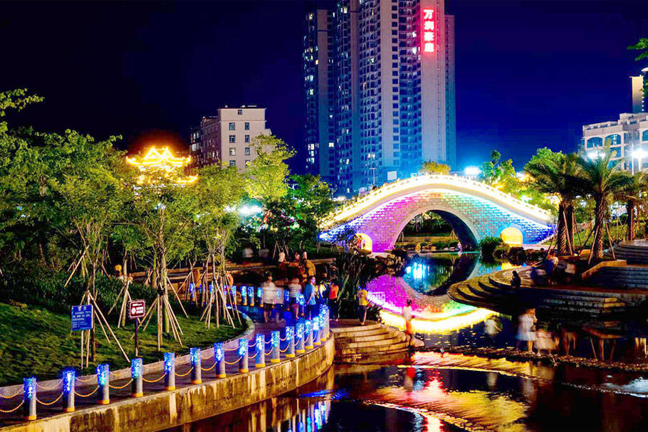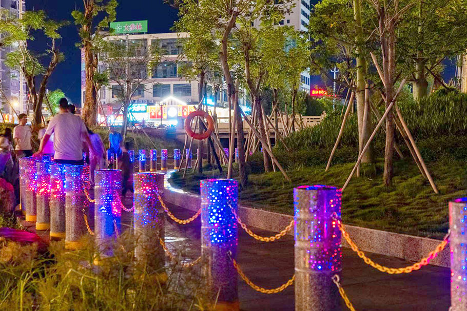 廣西北流鄉(xiāng)賢公園-河道發(fā)光路障石柱案例